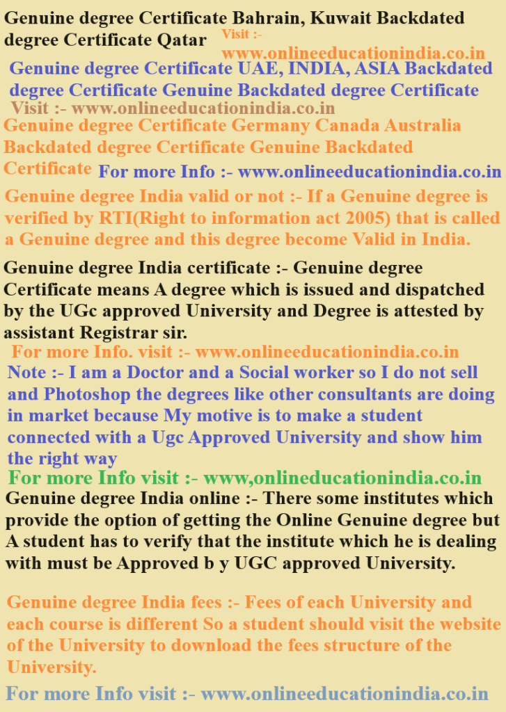 Genuine degree india online :- There some institutes which provide the option of getting the Online Genuine degree but A student has to verify that the institute which he is dealing with must be Approved b y UGC approved University.
